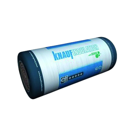 Panneau de laine de verre roulé revêtu d’un surfaçage kraft avec repères de mesure et de coupe.Isolation thermo-acoustique des combles perdus et planchers